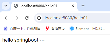 使用 SpringBoot 编写入门案例,实现浏览器发送请求到服务器,服务器处理完请求后响应一句话给浏览器。