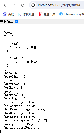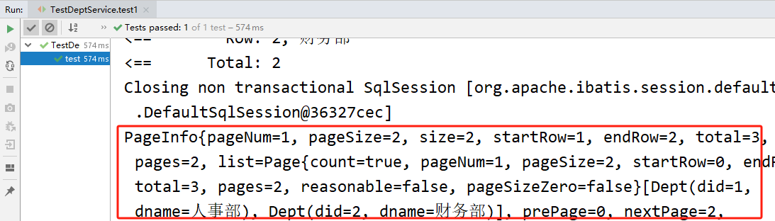 PageInfo<Dept> pageInfo = deptService.findAll(1, 2);