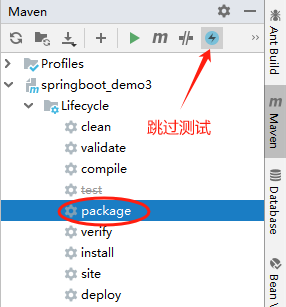 点击跳过测试按钮,然后再执行 package 命令,这样打包后没有测试相关的代码。