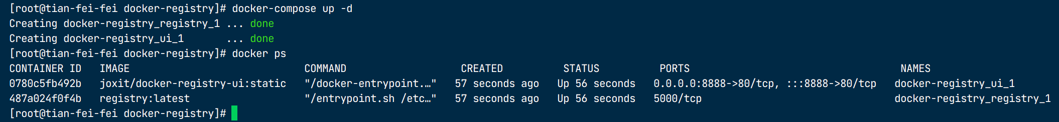 docker-compose up -d命令,执行docker ps查看是否成功运行