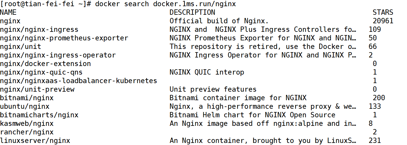 docker hub服务器在国外, 国内限制访问,这里使用docker.1ms.run国内的镜像占进行搜索