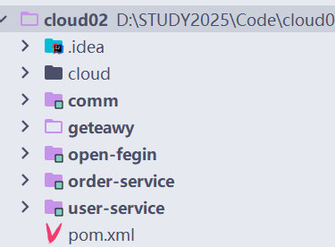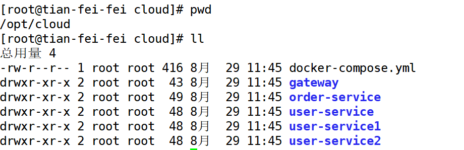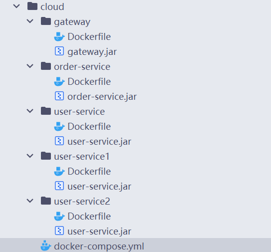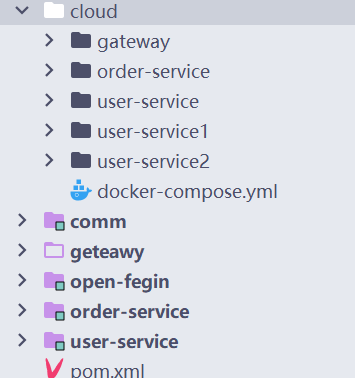 这里有一个各模块打包好的示例项目,我们在项目根目录创建一个cloud文件夹,在文件夹内创建docker-compose文件