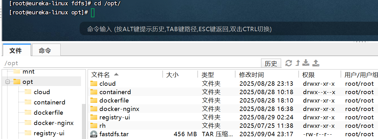 (1)首先将tar包拖进到我们linux目录/opt下面