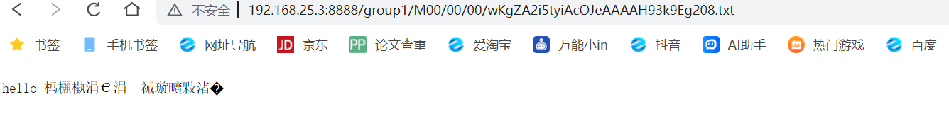 (7)访问http://192.168.25.3:8888/group1/M00/00/00/wKgZA2i5tyiAcOJeAAAAH93k9Eg208.txt(如下代表访问成功)