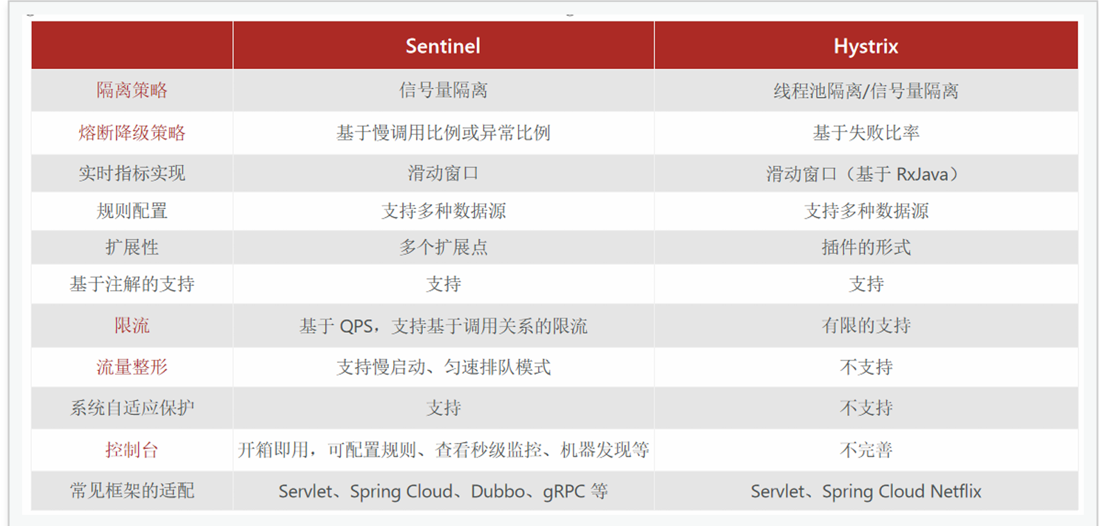 - ,为防止雪崩服务保护技术对⽐ (Sentinel与之前学习的Hystrix对比)