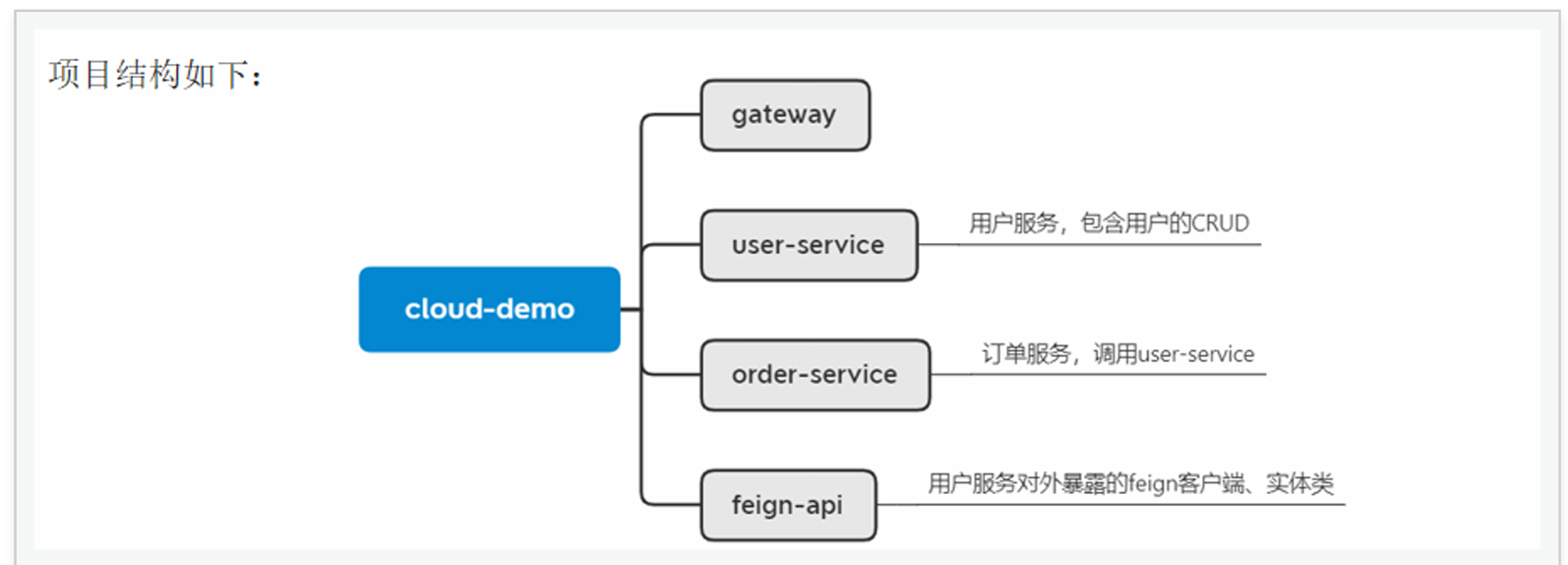- , **微服务整合Sentinel 引⼊ cloud-demo 要使⽤ Sentinel 肯定要结合微服务,这⾥我们使⽤ SpringCloud 实⽤篇中的 cloud-demo ⼯程。没有的⼩伙伴可以 在课前资料中找到: **