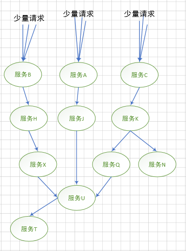 当少量请求时,对于整个服务链条是没有过多的影响的。