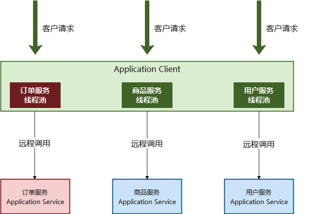 - 任何一个服务都会被隔离在自己的线程池内,即使自己的线程池资源填满也不会影响其他服务。