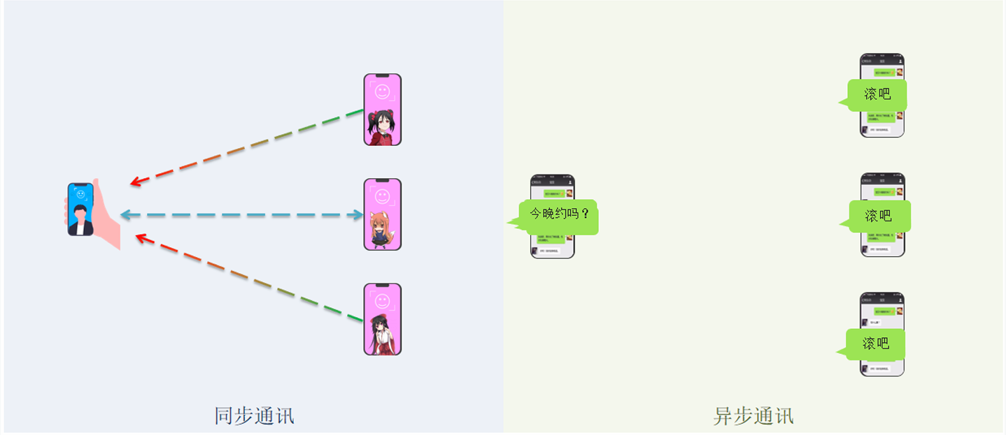同步通讯:就像打电话,需要实时响应。
