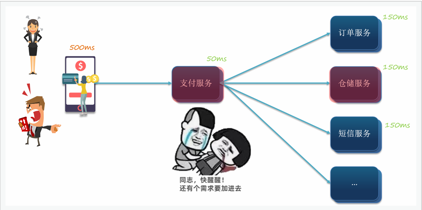 我们之前学习的 Feign 调⽤就属于同步⽅式,虽然调⽤可以实时得到结果,但存在下⾯的问题: 微服务间基于 Feign 的调⽤就属于同步⽅式,存在⼀些问题。