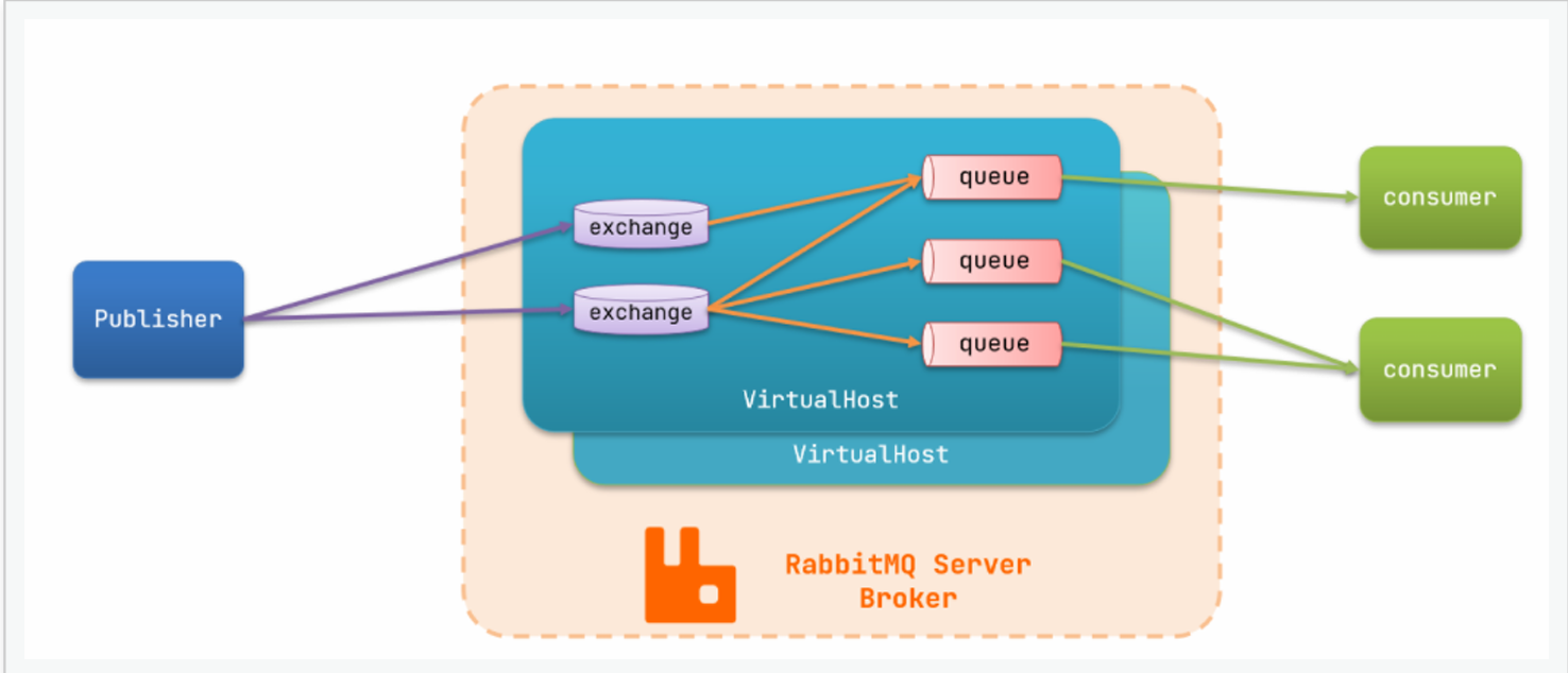 virtual host :虚拟主机,是对 queue 、 exchange 等资源的逻辑分组(环境隔离)
