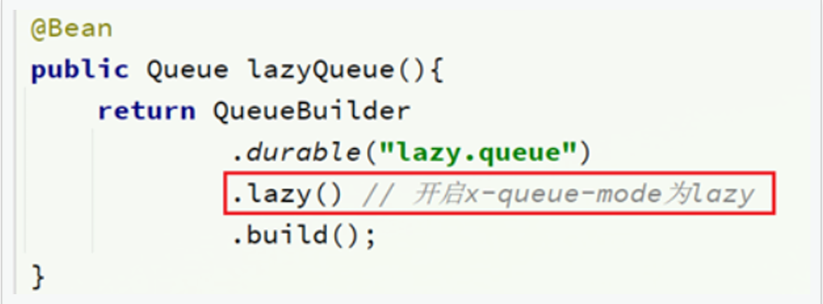 arguments = `@Argument`(name = "x-queue-mode", value = "lazy") // 声明为惰性队列