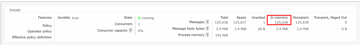 我们发现惰性队列的数据存在内存中的是⾮常少的,是 IO 出来准备消费的,其他的都在硬盘中存储,⽽普通队列所有 信息都在内存中,及其消耗内存。