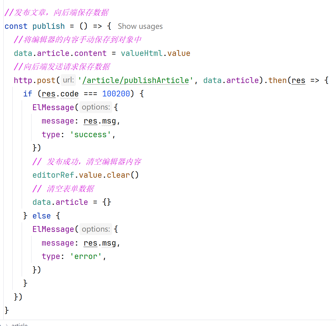 </style>(2)编写后端ArticleController接待层代码写固定的(上述代码已经包含调用后端接口方法)